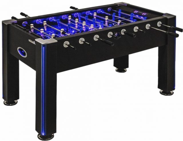Стол оснащен электронным счетчиком голов с LED подсветкой и сенсорным управлением, который позволяет удобно управлять мультимедийными возможностями кикера (включение/отключение звука и подстветки) и запускать игру (кнопка «reset»).