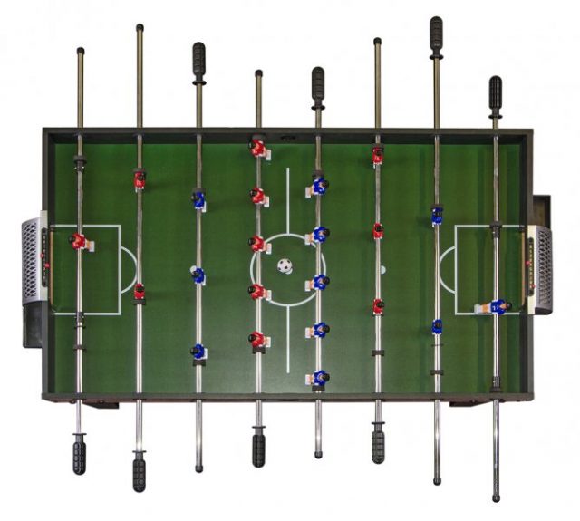 Дизайн стола, выполненный в классических футбольных цветах, украсит интерьер любой игровой комнаты. Его габариты и небольшая игровая зона гарантируют удобство при эксплуатации.