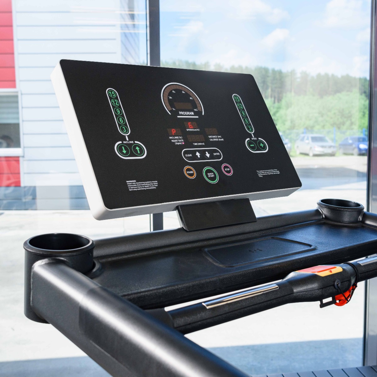 На информационной панели размещены клавиши старта и остановки, клавиши регулировки угла наклона (3, 6, 9, 12, 15) и регулировки скорости (3, 6, 9, 12, 15).