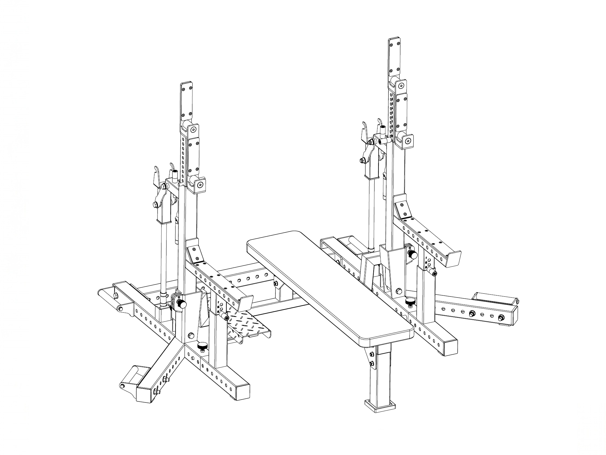 Профессиональная скамья и стойка для пауэрлифтинга это мощное комбинированное изделие соответствующее требованиям соревновательного пауэрлифтинга. Выполняйте жимы лёжа или одним движением уберите скамью и начните приседать, а стойка выдержит любой взятый вами вес.