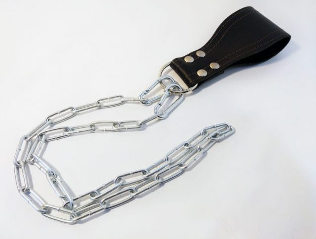 Ремешок хомут для отягощений на пояс изготавливается из натуральной кожи и имеет высокий запас прочности: толстая кожа плюс крепление полукольца на четырех клепках. Преимущество изделия в том, что дополнительный вес можно приспособить на любой атлетический пояс, который уже имеется у атлета. При использовании двух ремешков можно сымитировать стандартный пояс для отягощений.