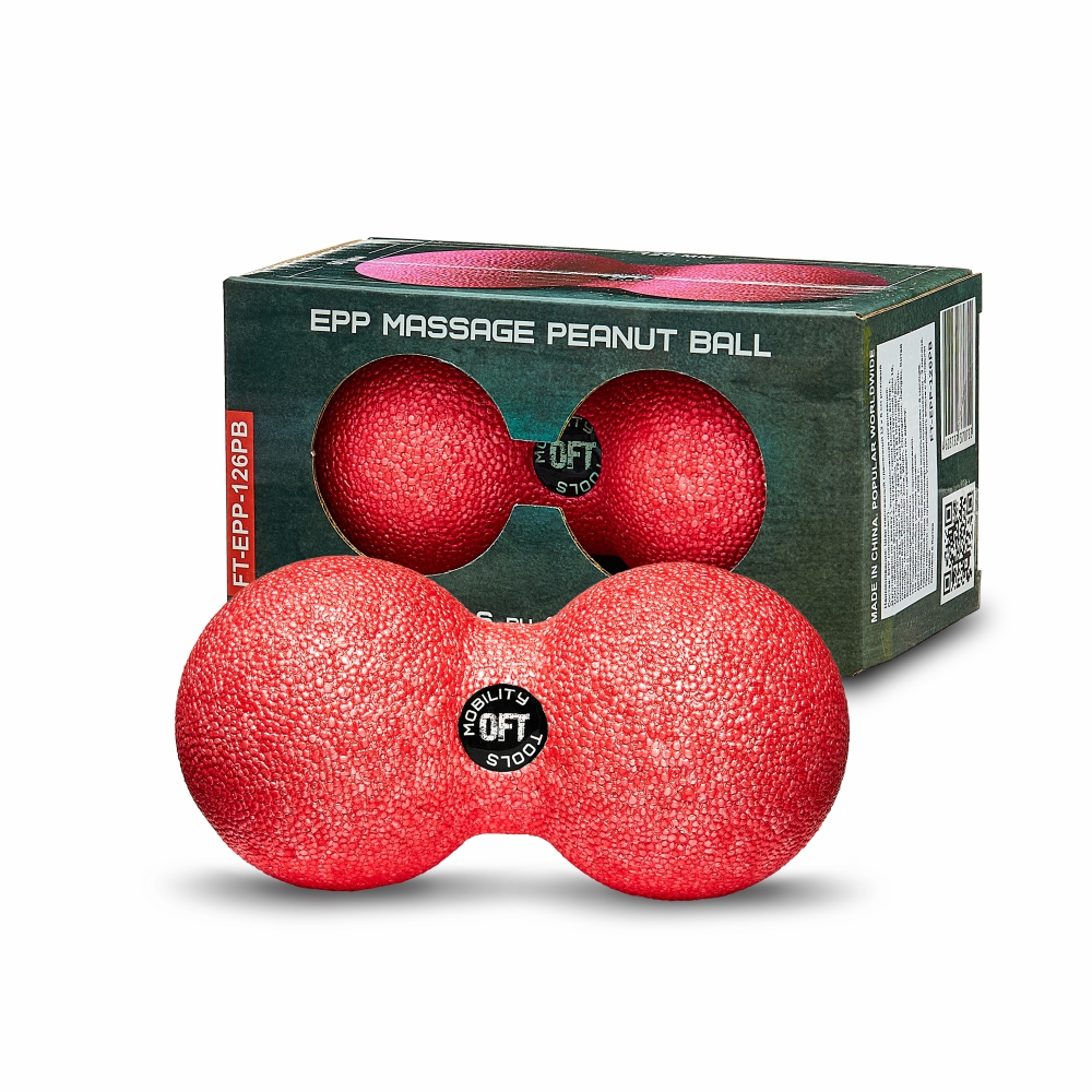 Сдвоенный массажный шар, который из-за характерной формы двух связанных между собой мячей называют «арахисом» (“peanut-ball”), изготовлен из высококачественного пенопласта (EPP). Двойной мяч OFT обладает исключительной плотностью и однородной структурой без пустот, благодаря чему шар сохраняет форму и не проминается даже при сильном надавливании.