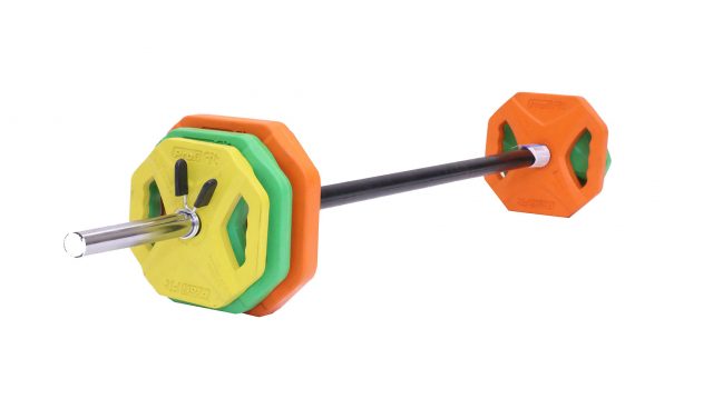 Штанга для аэробики PROFI-FIT PROGRESS, обрезиненные диски (1,25 кг; 2,5 кг; 5 кг) по 2шт Стальной гриф с резиновым антискользящим покрытием, длина 1400 мм, ø-25 мм, замки-пружины — 2шт, стальные обрезиненные диски (1,25 кг; 2,5 кг; 5 кг) по 2шт. Яркие цвета дисков аэробической штанги привнесут дополнительный позитив в тренировки. Удобно различать вес каждого диска: 1,25 кг — желтые, 2,5 кг — зеленые, 5 кг — оранжевые. Специальная форма весовых дисков предохраняет от катания штанги. Вес комплекта: 19 кг. Цена указана за комплект. Яркие, стильные, соответствующие требованиям эргономики и безопасности штанги предназначены для занятий PUMP аэробикой. Съемные обрезиненные диски, надежно крепятся благодаря замкам-пружинам и позволяют подобрать нужный вес. Гриф с резиновым покрытием обеспечивает дополнительный комфорт при захвате
