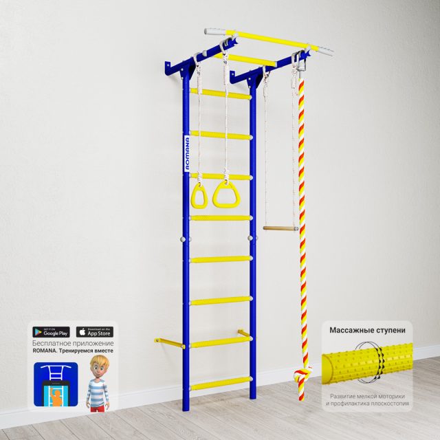 Модель ДСК ROMANA Karusel S1 относится к «поколению 2018»  и поставляется в обновленной цветовой гамме и с новым, приятным цветом фурнитуры. Теперь это не просто тренажер, а настоящее украшение детской комнаты. Добавьте к этому бесплатное приложение «ROMANA. Тренируемся вместе» , и вы поймете, что физкультура — это весело!