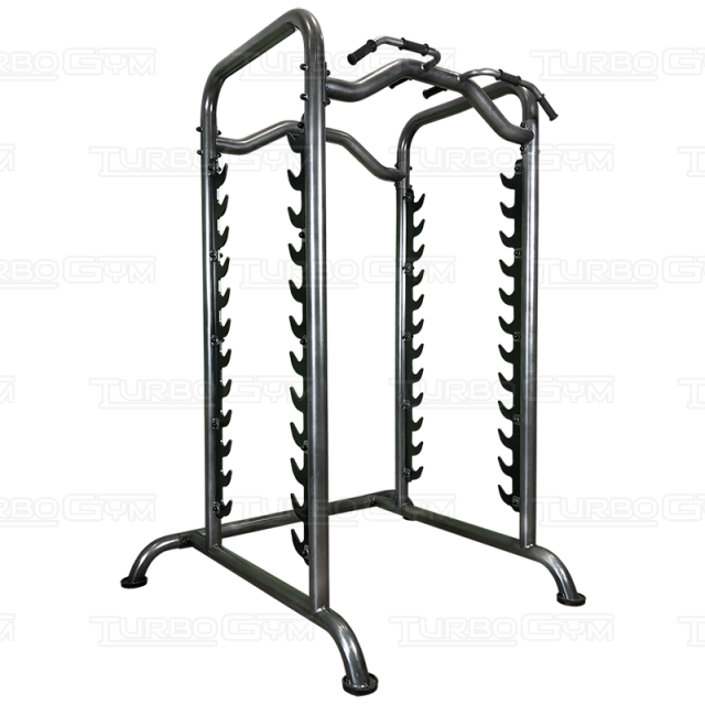 Представляет собой классическую монолитную конструкцию из параллельных вертикальных стоек, на которых распределены упоры для грифа через равные отрезки. Снаряд можно устанавливать на любой высоте от 40 до 200 см (с интервалом в 14 см). Размеры этой модели позволяют разместить ее в небольшом спортзале, в доме, в квартире.