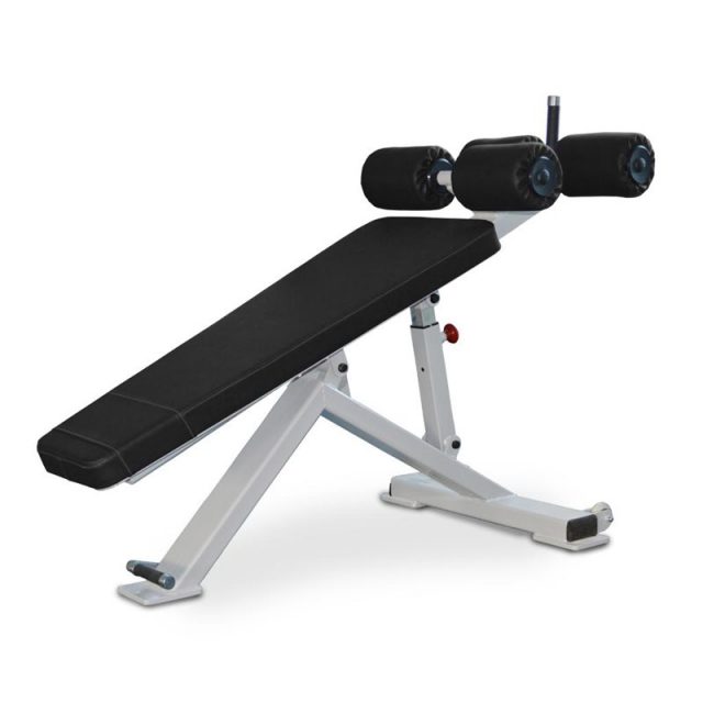 - Ложе снабжено механизмом вертикального линейного перемещения и при помощи фиксатора позволяет регулировать угол его наклона для изменения нагрузки на тренируемые мышцы брюшного пресса.