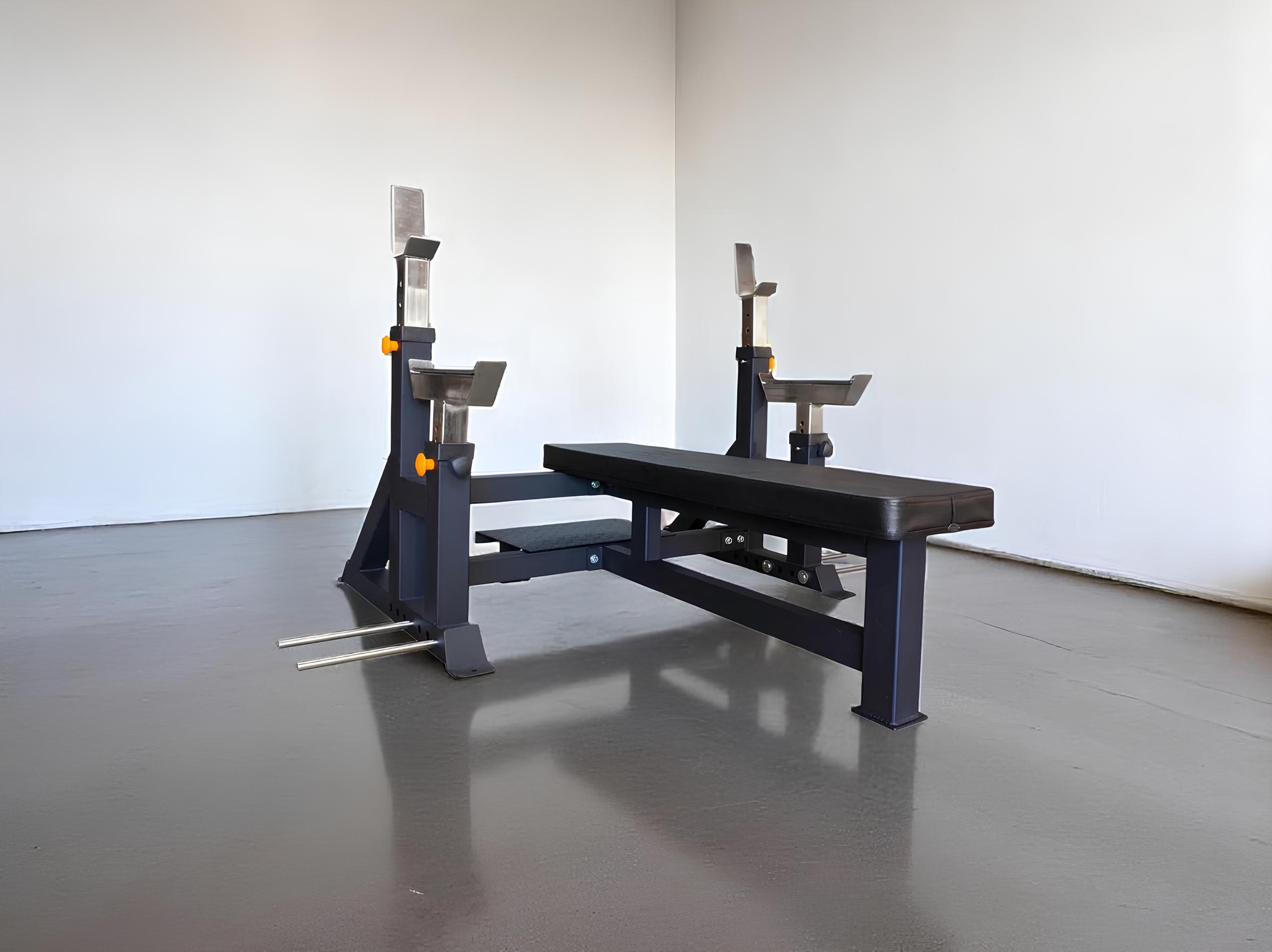 Мощная, устойчивая олимпийская скамья для жима лежа.