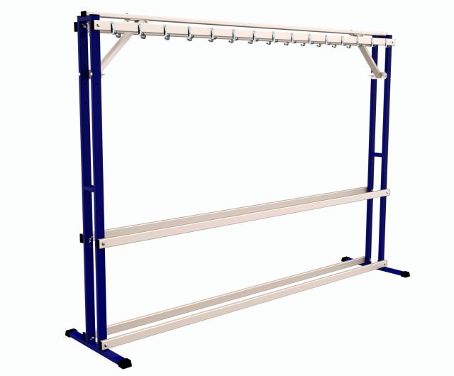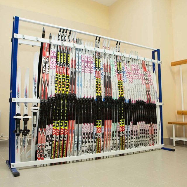 Предназначена для хранения беговых лыж и лыжных палок в спортивных учреждениях, предприятиях и т.д., с возможностью регулировки по высоте, для разных типов лыж.