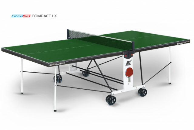 Теннисный стол Compact LX green — модель с усовершенствованной конструкцией и яркой зеленой столешницей для использования в помещениях. Среди ее плюсов: