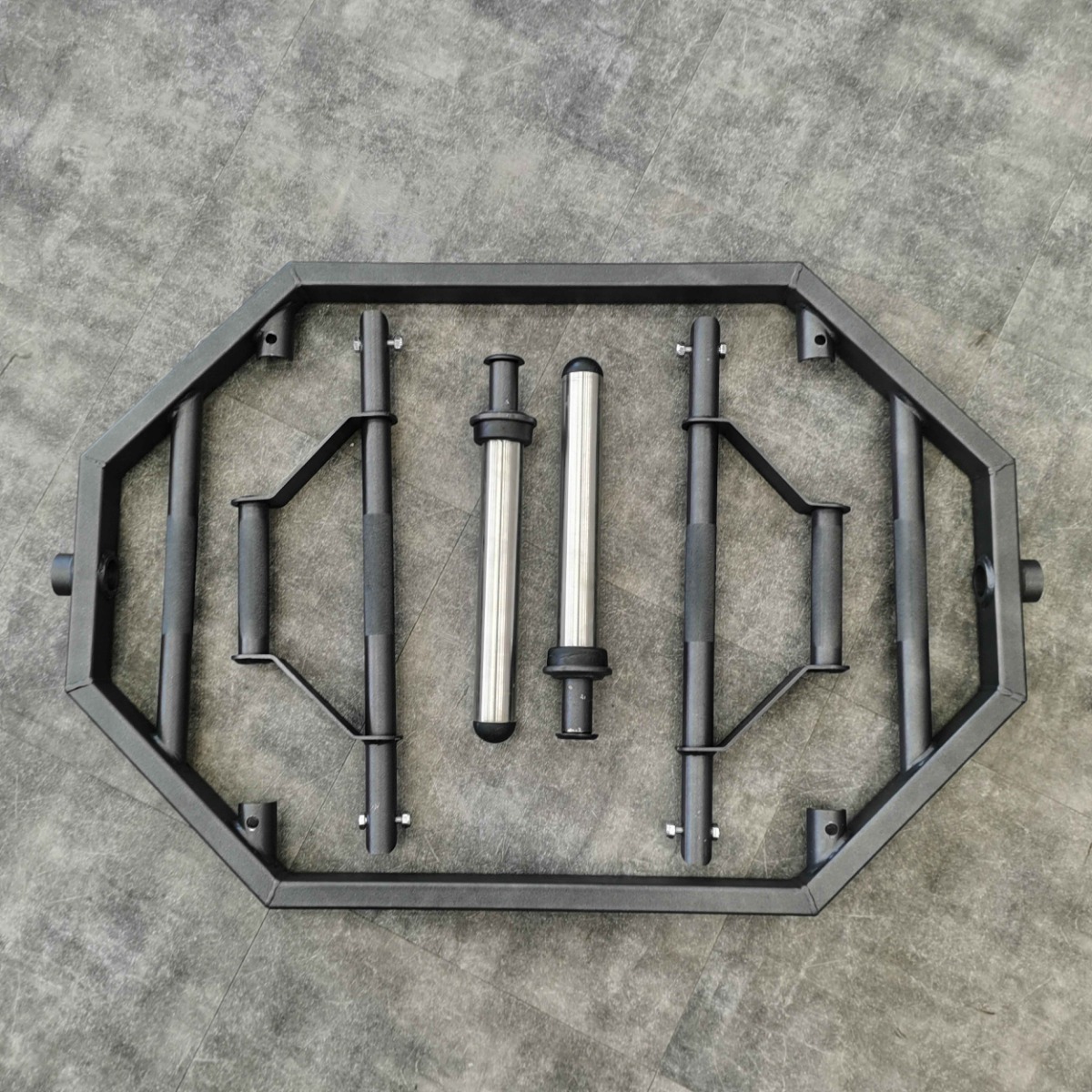 Два накопителя для работы со свободным весом (дисками D50) выполнены из нержавеющей стальной трубы диаметром 48 мм и стального листа толщиной 8 мм.