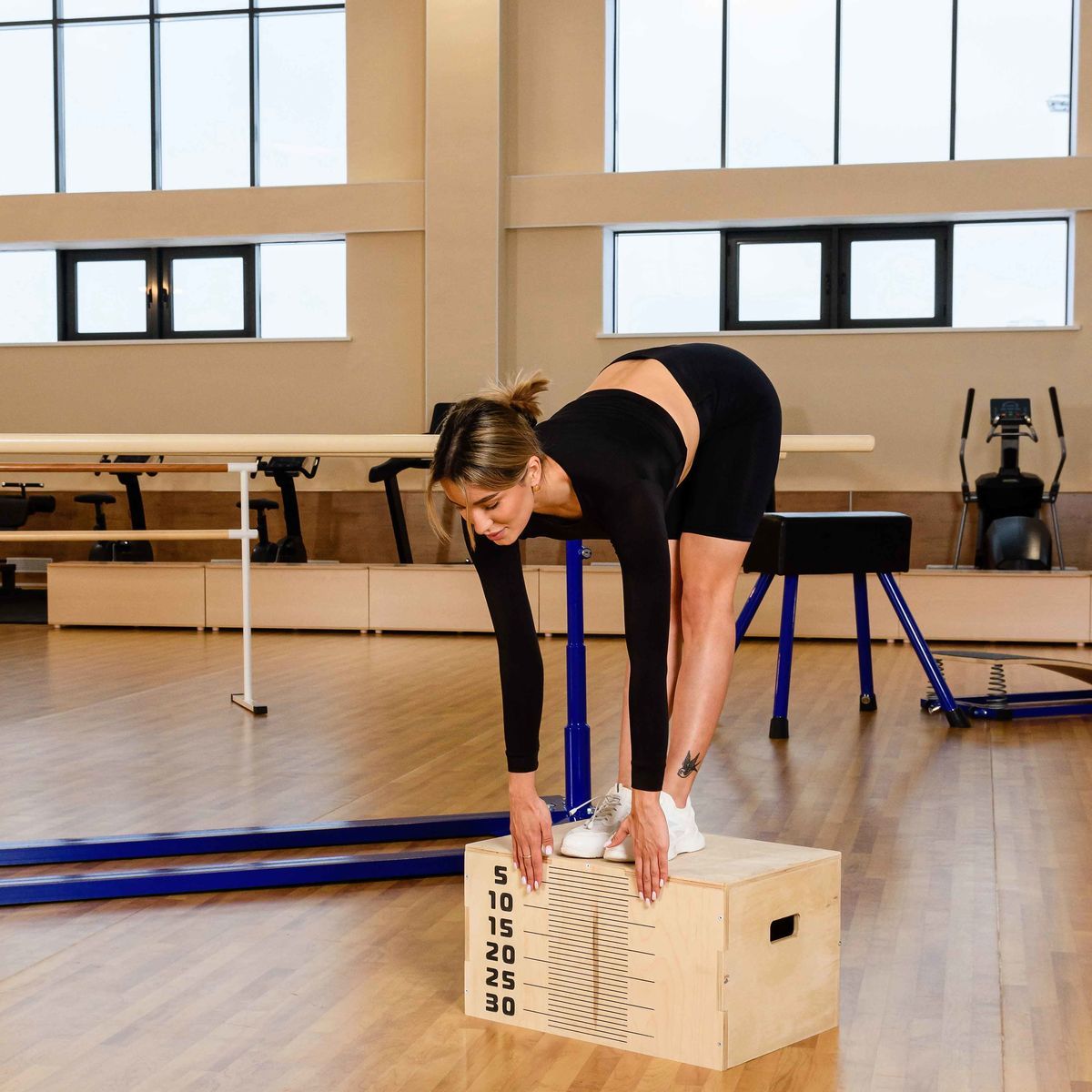 Тумба используется для сдачи наклонов вперед с прямыми ногами.