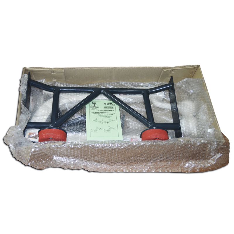 Кронштейны выполнены из квадратного профиля 60х40 мм, а диаметр турника — 28 мм, подходящий большинству пользователей. Расстояния между рукоятями позволяют комфортно выполнять упражнения, без опасения застревания руки.