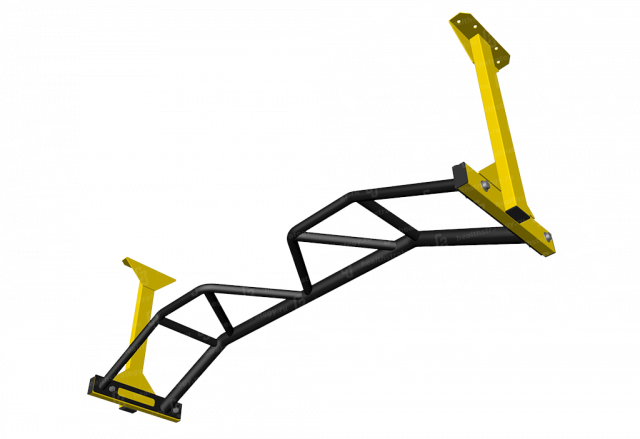 Турник имеет разборную конструкцию и изготавливается из толстостенных металлических труб для повышенной прочности и устойчивости к нагрузкам до 150 кг. Крепление к потолку осуществляется с помощью 8 входящих в комплект шурупов под шестигранник. Окрашен высококачественной порошковой краской.