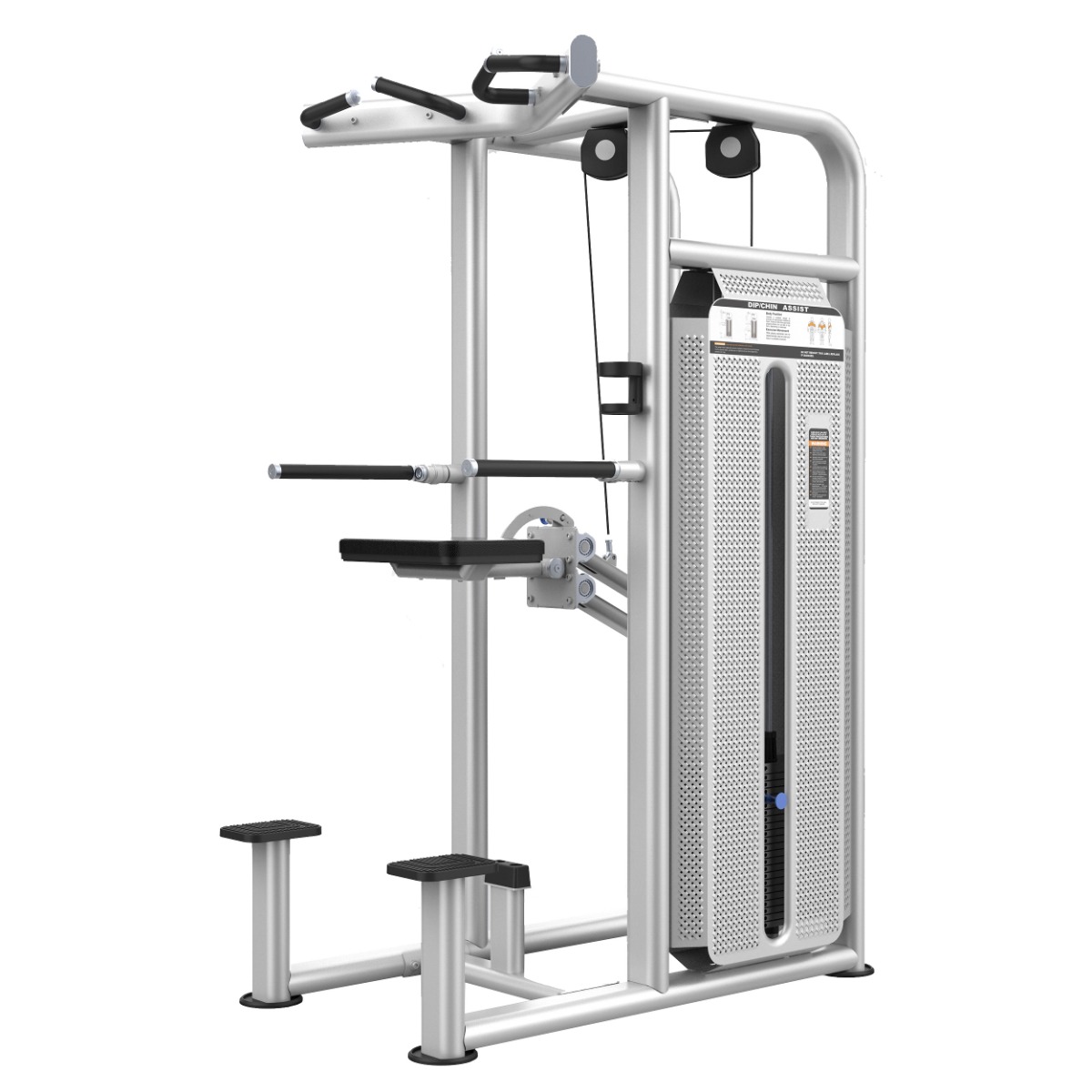 Профессиональный тренажер для коммерческого использования U2009CBZ Турник, брусья с противовесом предназначен для облегченных отжиманий или подтягиваний разным хватом и задействует мышцы верхней части тела – широчайшие мышцы спины, дельтовидные, трапециевидные и ромбовидные мышцы, бицепсы и трицепсы, большие грудные мышцы.