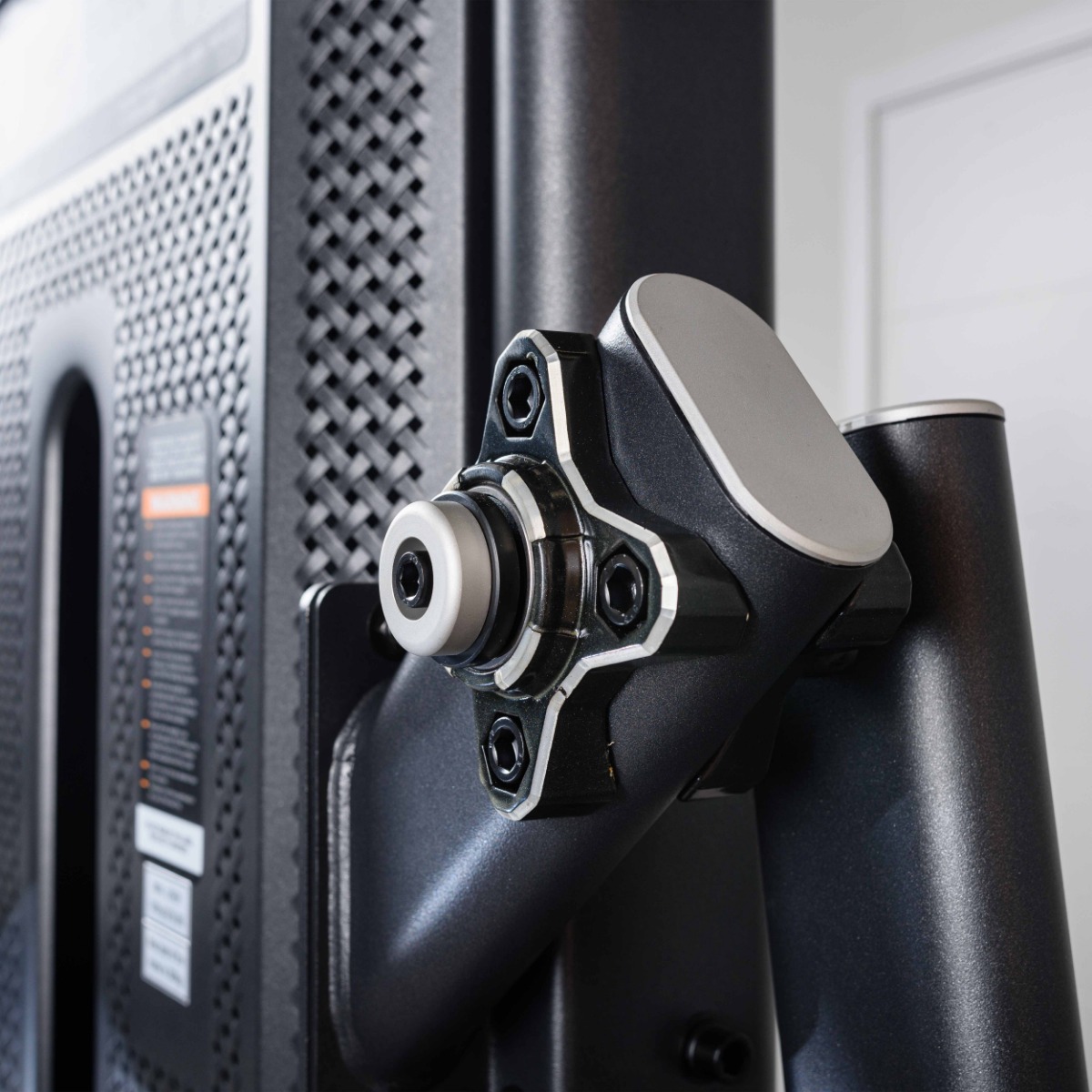 Рычаг для ног, оборудованный нескользящими резиновыми вставками с рифленой поверхностью для устойчивого положения, движется по нелинейной траектории, тем самым обеспечивает концентрацию на целевых мышцах.