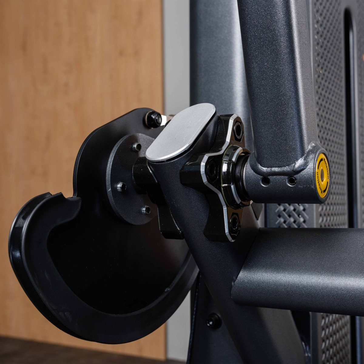 Прорезь в защитном кожухе грузоблока для доступа к регулировке нагрузки шлифованная с завальцованными внутрь гранями по всему периметру для безопасного доступа к весовому стеку и обеспечения дополнительной жёсткости рамы грузоблока.