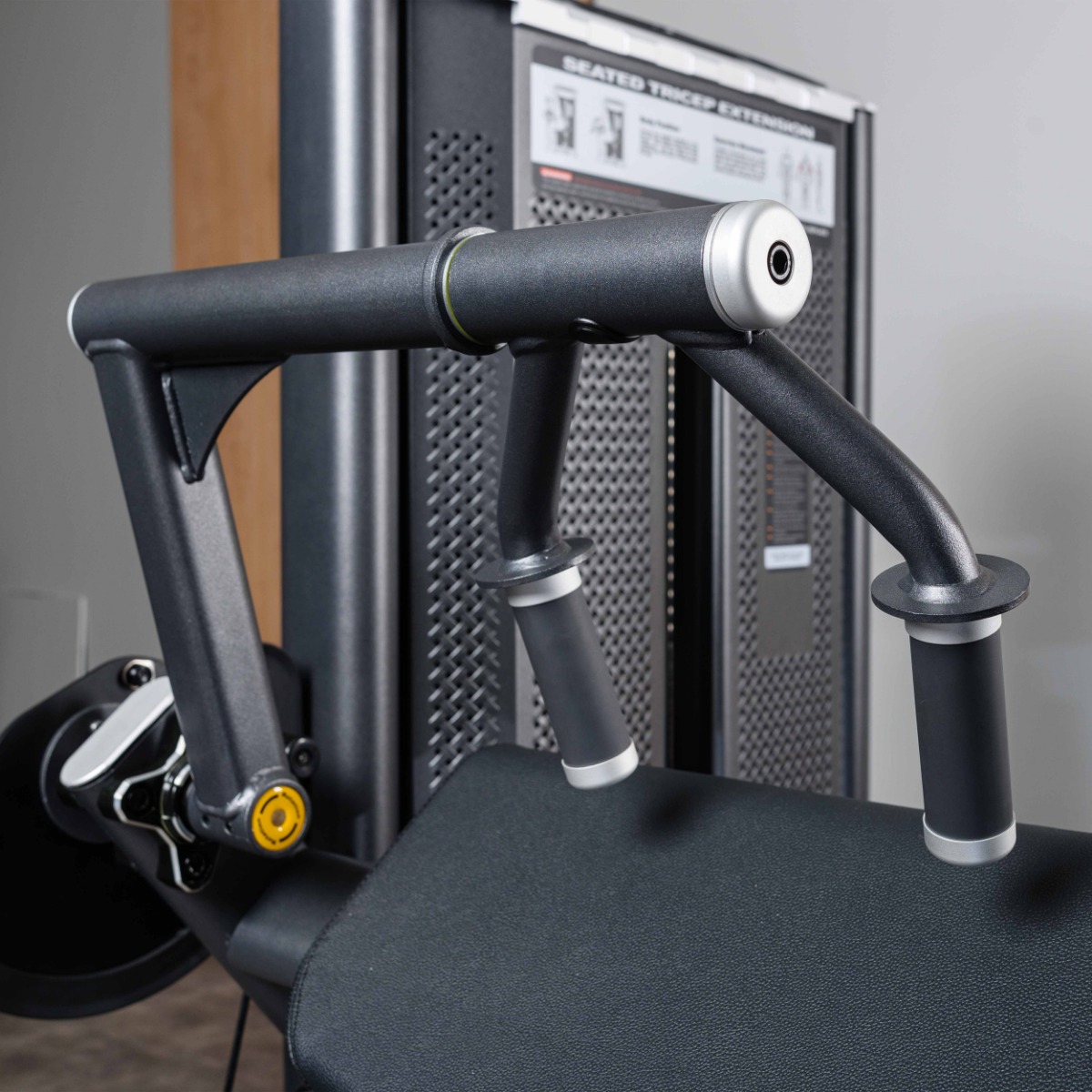 Профессиональный тренажер для коммерческого использования U2028 Трицепс-машина сидя. Наклонная парта предназначен для изолирующего упражнения на трицепс в исходном положении тела с наклоном вперед.