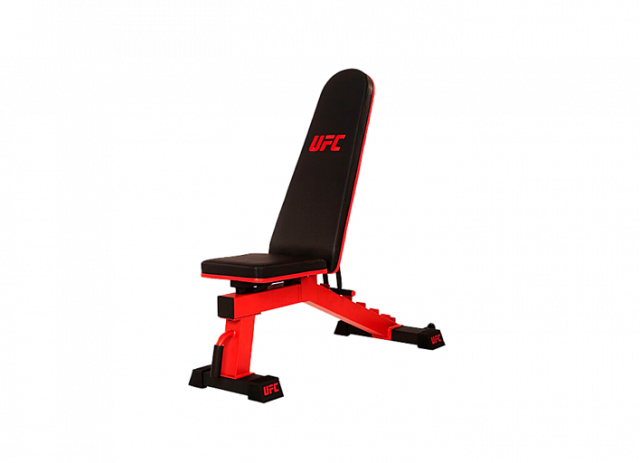 Скамья универсальная Deluxe UFC выполнена из прочной стали толщиной 1,5 мм и предназначена для выполнения упражнений с гантелями и штангой. Такая скамья станет хорошим дополнением для домашней гимнастики, а также идеально подойдёт для выполнения различных силовых упражнений. Усиленный металлический каркас и продуманная конструкция обеспечивают высокую устойчивость тренажера при выполнении любых упражнений. Она идеально подходит для тренировок руки, плечей, груди и спины.