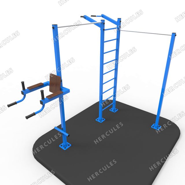 Один из самых удачных спортивных комплексов для частного двора или дачи. Функционален и надежен. Стальной профиль 60х60 м (стенка 2) мм, перекладины 26/28 мм из стального круга, а не трубы. Несколько турников с разными хватами, скамья для пресса с регулируемой высотой, подставки для грифа штанги, пресс-брусья. Предназначение: для упражнений на трапециевидные и широчайшие мышцы спины, груди, бицепс, трицепс. Тренажер позволяет нескольким лицам (2-3) заниматься одновременно. Категория: для общего физического развития на открытом воздухе лицами от различной подготовки от 16 лет. Максимально допустимая нагрузка – 300 кг Online магазин Royal Sport предлагает купить товар: УТ102 Уличный атлетический комплекс с турником. Стоимость в Москве — от производителя и качество товара соответствует самым высоким нормам. УТ102 Уличный атлетический комплекс с турником – купить в нашем интернет магазине данную продукцию можно двумя способами: