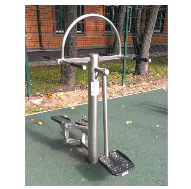 Тренажер полностью изготовлен из нержавеющей стали и отполирован до зеркального блеска! (кроме подшипников и сидений). Такой тренажер не нужно перекрашивать каждый год, он не покроется пятнами ржавчины! Одновременно может заниматься два спортсмена.Тренажер cовмещенный: Маятниковый тренажер и Степпер. Степпер — имитирует ходьбу. Маятник – тренирует мышцы спины и живота. Выполнение упражнений: Степпер — необходимо ногами встать на платформы, держась при этом руками за рукояти, совершать движения ногами, имитирующие подъем вверх по лестнице. Маятниковый тренажер — держась за рукояти встать ногами на подвижную платформу и совершать раскачивания и сгибание нижней части тела влево и вправо. Материалы: нержавеющая сталь. Все узлы вращения оснащены подшипниками. Конструкция имеет радиальные загибы (округление), выполненные для увеличения прочности конструкции. В комплект тренажера входит элемент закладного фундамента.Максимально допустимая нагрузка — 150 кг.