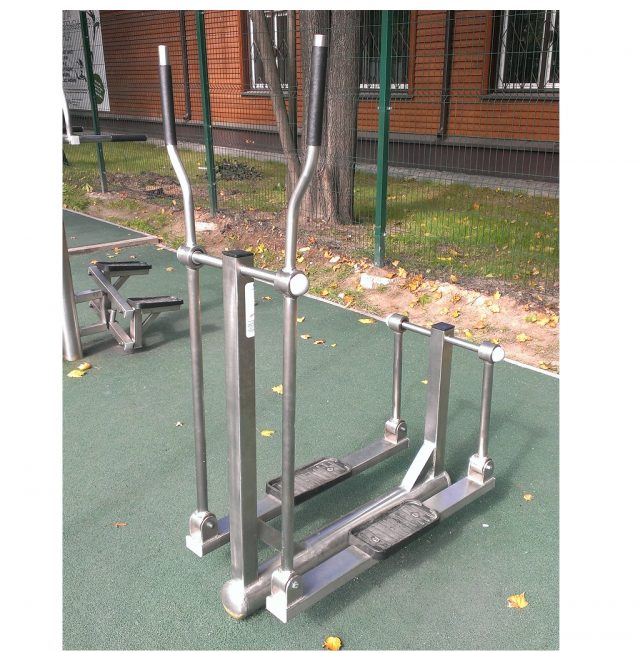 Тренажер полностью изготовлен из нержавеющей стали (кроме подшипников). Материалы: нержавеющая сталь. Все узлы вращения оснащены подшипниками. Конструкция имеет радиальные загибы (округление), выполненные для увеличения прочности конструкции. В комплект тренажера входит элемент закладного фундамента. Основание оборудования выполнено из трубы не менее Ф102 мм, стенка не менее 2мм, плита основания – стальной лист не менее 5мм. или закладной элемент под бетонирование не менее Ф102мм. Рычажная система выполнена из труб прямоугольного и/или круглого сечения с толщиной стенки более 2 мм. Ногоступы выполнены из профилированного алюминиевого листа или литого пластика. Все подвижные элементы снабжены необслуживаемыми подшипниками закрытого типа. Соединения болтовые и сварные. Все детали зачищены, заусенцы удалены, острые углы скруглены.