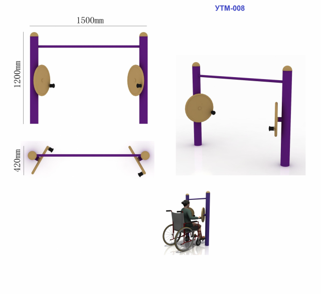 Тренажер предназначен для инвалидов-колясочников. Сидя