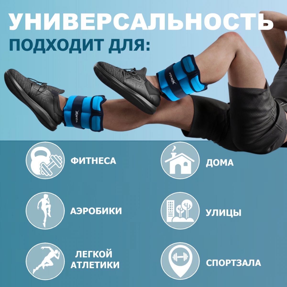 Утяжелитель для ног 3 кг (2 шт. — пара) FITEX PRO для ног эффективен при беге трусцой, занятиях аэробикой, оздоровительной гиманстикой и фитнесом, так как позволяют увеличить нагрузку на мышечный корсет.