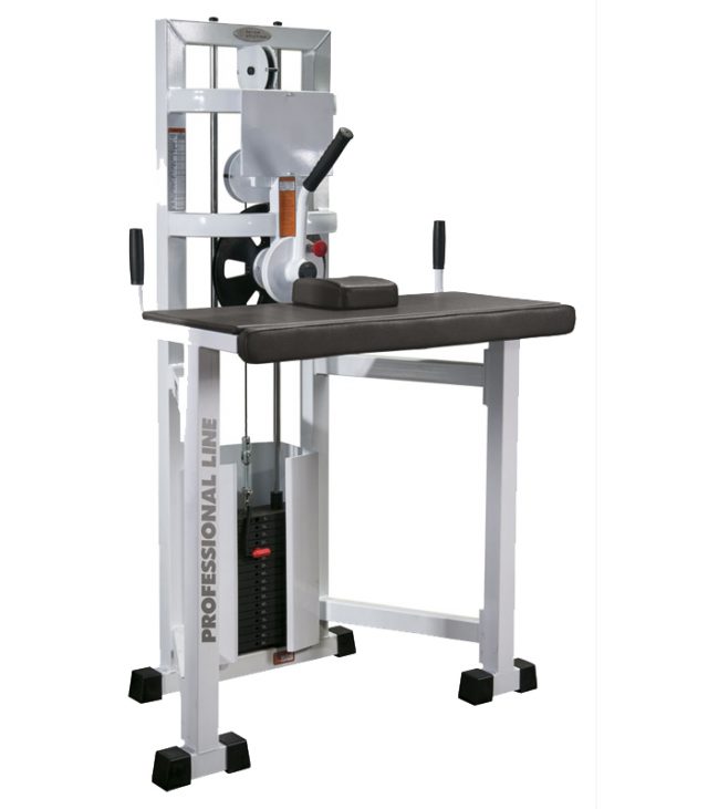 Категория: профессиональный. Описание: профиль несущей конструкции 60х60х3 (мм). Тренажер окрашивается порошковой краской. Мягкие части изготовлены из многослойной фанеры (20 мм), в качестве наполнителя и обивки используется двухслойный пенополиуретан, устойчивый к усадке и высококачественная искусственная кожа. Грузоблочный стек тренажера состоит из 16 металлической плиты весом по 5кг, и направляющих. Изменение нагрузки происходит при помощи селектора (фиксатора) на гибком шнуре с магнитным доводчиком. Для приведения в движение грузов используется трос 5 мм в пвх оплетке с усилием на разрыв 500 кг с макс. нагрузкой 800кг. Амортизирующими подпятниками, не требующими крепления к полу.