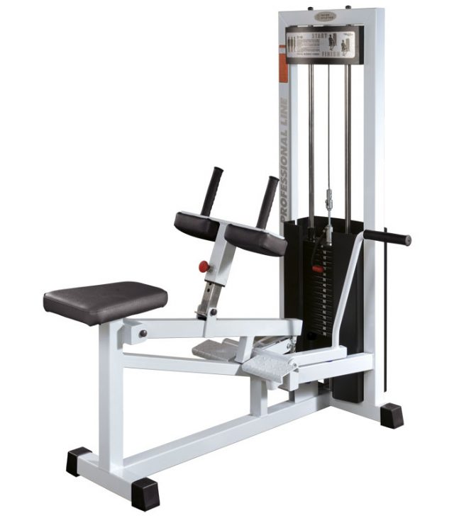 Описание: профиль несущей конструкции 60х60х3 (мм). Тренажер окрашивается порошковой краской. Сидение изготовлено из многослойной фанеры (20 мм), в качестве наполнителя и обивки используется двухслойный пенополиуретан, устойчивый к усадке и высококачественная искусственная кожа. Регулировка амплитуды движения позволяет заниматься на тренажере людям с разными ростовыми характеристиками. Грузоблочный стек тренажера состоит из 17 металлических плит весом по 5кг, и направляющих. Изменение нагрузки происходит при помощи селектора (фиксатора) на гибком шнуре с магнитным доводчиком. Для приведения в движение грузов используется трос 5 мм в пвх оплетке с усилием на разрыв 500 кг с макс. Нагрузкой 800кг. Скрытая система подшипников и амортизаторов обеспечивает плавность хода и шумопоглащение. Тренажер оснащен памяткой технического обслуживания, амортизирующими подпятниками, не требующими крепления к полу. Габаритные размеры (мм): высота — 1600, длина — 1535, ширина — 860. Общий вес 183 кг. Вес грузоблока 85кг.