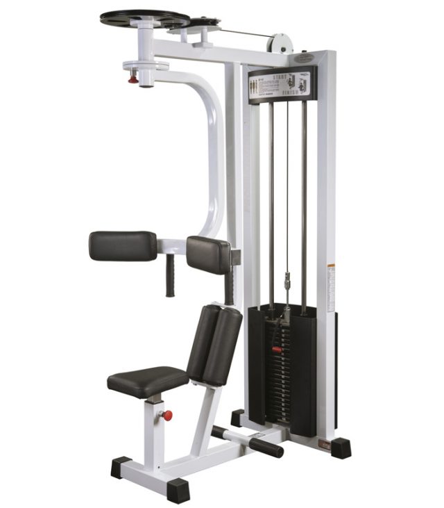 Грузоблочный стек тренажера состоит из 21 металлической плиты весом по 5кг, и направляющих. Изменение нагрузки происходит при помощи селектора (фиксатора). Для приведения в движение грузов используется трос 5 мм в пвх оплетке с усилием на разрыв 500 кг с макс. нагрузкой 800кг. Скрытая система подшипников и амортизаторов обеспечивает плавность хода и шумопоглащение. Тренажер оснащен памяткой технического обслуживания, амортизирующими подпятниками, не требующими крепления к полу.габаритные размеры (мм): высота — 1890, длина — 1180, ширина — 830. общий вес 187кг. вес грузоблока 105 кг.