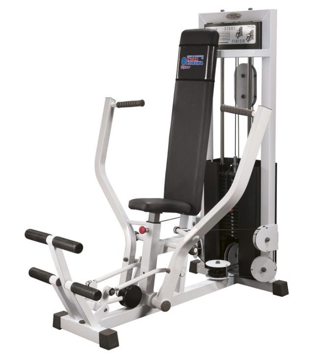 Описание: профиль несущей конструкции 60х60х3 (мм). Тренажер окрашивается порошковой краской. Сидение изготовлено из многослойной фанеры (20 мм), в качестве наполнителя и обивки используется двухслойный пенополиуретан, устойчивый к усадке и высококачественная искусственная кожа. Регулировка сиденья позволяет заниматься на тренажере людям с разными ростовыми характеристиками. Грузоблочный стек тренажера состоит из 21 металлической плиты весом по 5кг, и направляющих. Изменение нагрузки происходит при помощи селектора (фиксатора). Для приведения в движение грузов используется трос 5 мм в пвх оплетке с усилием на разрыв 500 кг с макс. Нагрузкой 800кг. Скрытая система подшипников и амортизаторов обеспечивает плавность хода и шумопоглащение. Тренажер оснащен системой легкого старта, памяткой технического обслуживания, амортизирующими подпятниками, не требующими крепления к полу.