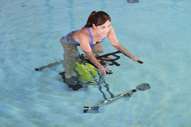 Этот стационарный велотренажер предназначен для высокоинтенсивных тренировок, нагрузка регулируется механически. Новое покрытие рукояток обеспечивает надежный хват. Новый дизайн педалей обеспечивает непревзойденный комфорт при использовании. Покрытие педалей — полиэтилен.Спереди у велотренажера предусмотрены колесики для удобной транспортировки в бассейн и обратно.