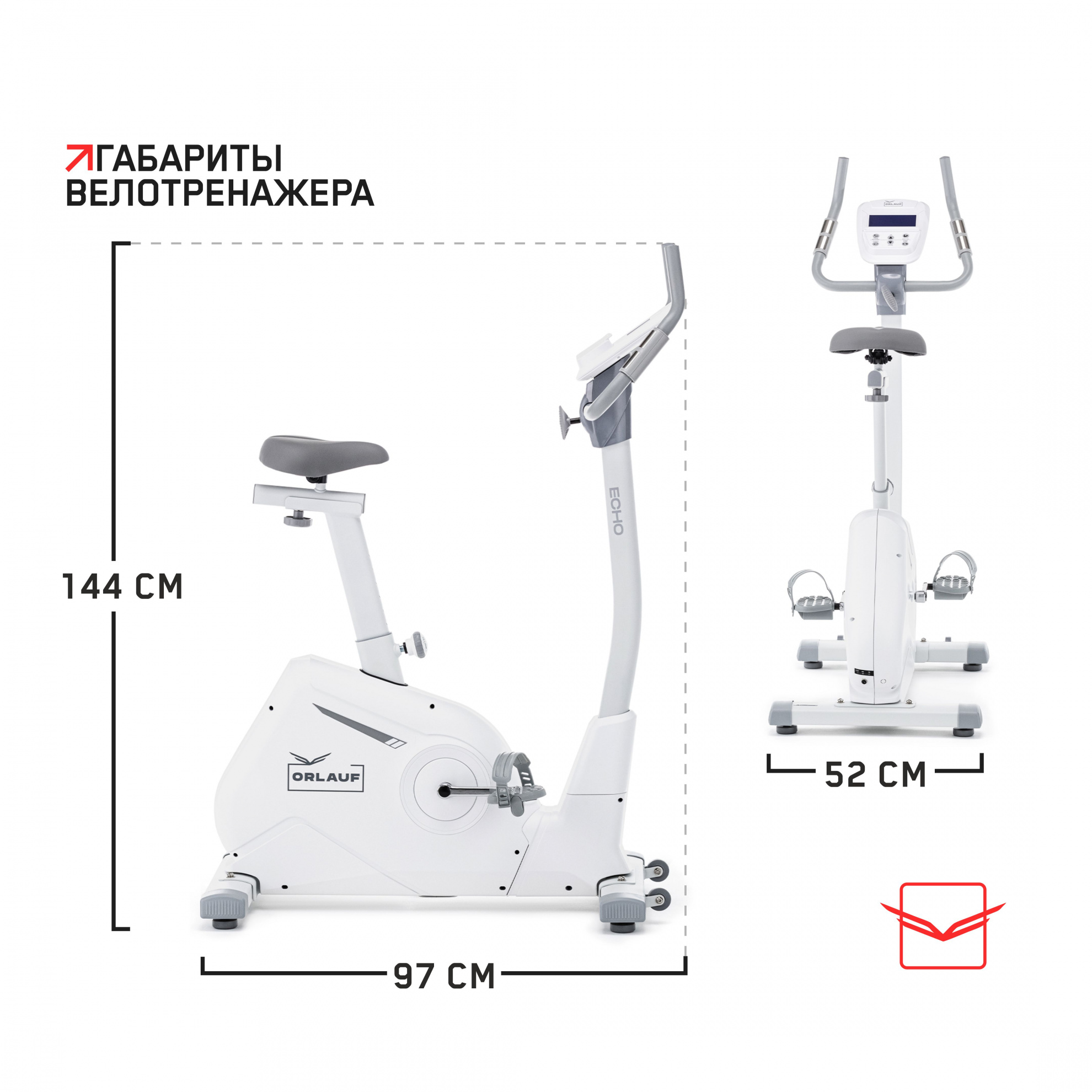 Orlauf Echo — электромагнитный велотренажер с вертикальной посадкой. Модель выделяется среди конкурентов тяжелым маховиком, стильным дизайном и большой максимальной нагрузкой.