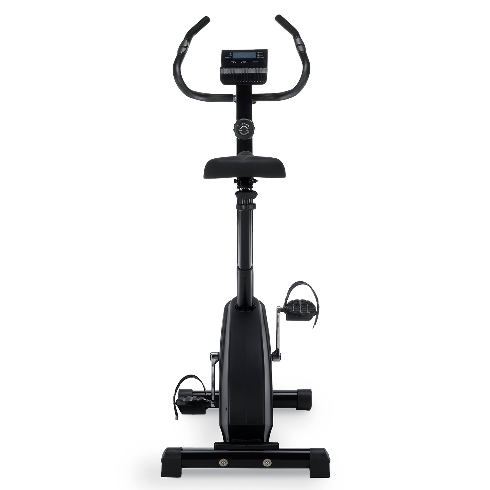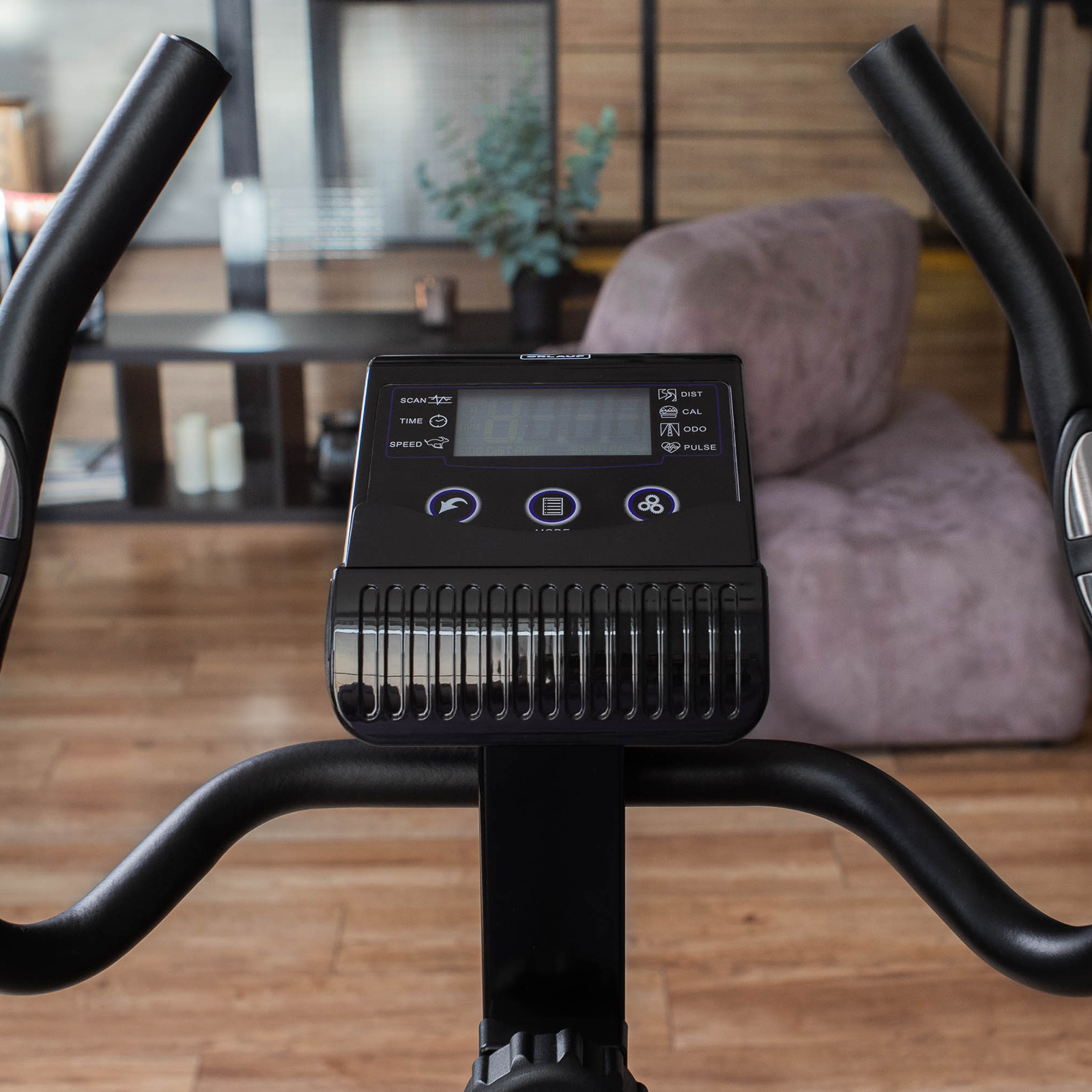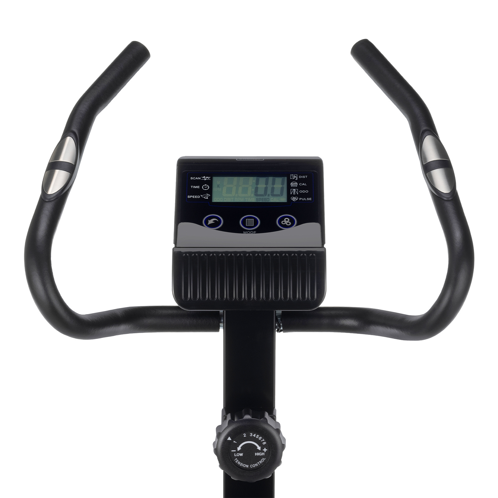 Для управления тренажером есть интуитивно понятная консоль с полочкой для смартфона. Предусмотрено 8 уровней нагрузки, для ее регулировки есть барашек на рулевой стойке.