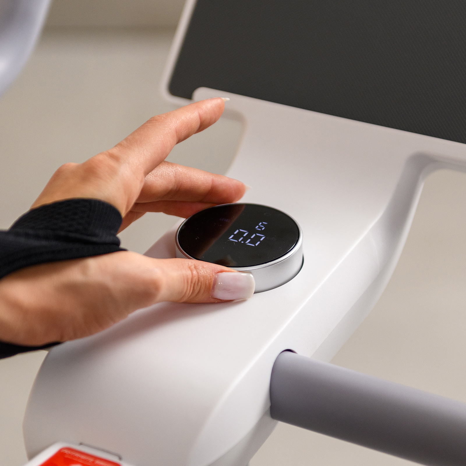 Управление осуществляется с помощью многофункциональной кнопки на консоли с LED-дисплеем. Консоль отображает параметры тренировки, включая пульс, измеряемый сенсорными датчиками на руле. Это позволяет контролировать интенсивность нагрузки и следить за прогрессом.