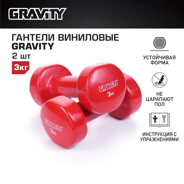 Добавьте ярких красок в свою программу силовых тренировок с прочными виниловыми гантелями Gravity! Гантели –– один из самых популярных фитнес-аксессуаров благодаря их долговечности, простоте использования и доступной стоимости. Компактные по размеру, гантели Gravity отлично подходят как для тренировок дома и в тренажерном зале, так и во время путешествий. Виниловое покрытие этих гантелей обеспечивает удобный хват и необходимый комфорт во время выполнения упражнений, а также надолго сохраняет их внешний вид, защищая от сколов. Мягкие грани предотвращают укатывание во время использования и обеспечивают удобное хранение. Все гантели маркированы разными цветами для легкой идентификации нужного веса. В комплект входит инструкция с основными упражнениями – начните наращивать силу и тонизировать мышцы сразу после покупки!